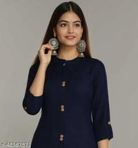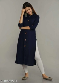 Catalog Name:*Myra Graceful Kurtis* Fabric: Rayon Sleeve Length: Three-Quarter Sleeves Pattern: Solid Combo of: Single Sizes: S (Bust Size: 36 in, Size Length: 46 in) M (Bust Size: 38 in, Size Length: 46 in) L (Bust Size: 40 in, Size Length: 46 in) XL (Bust Size: 42 in, Size Length: 46 in) XXL (Bust Size: 44 in, Size Length: 46 in) Easy Returns Available In Case Of Any Issue *Proof of Safe Delivery! Click to know on Safety Standards of Delivery Partners- https://ltl.sh/y_nZrAV3
