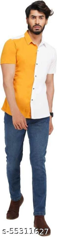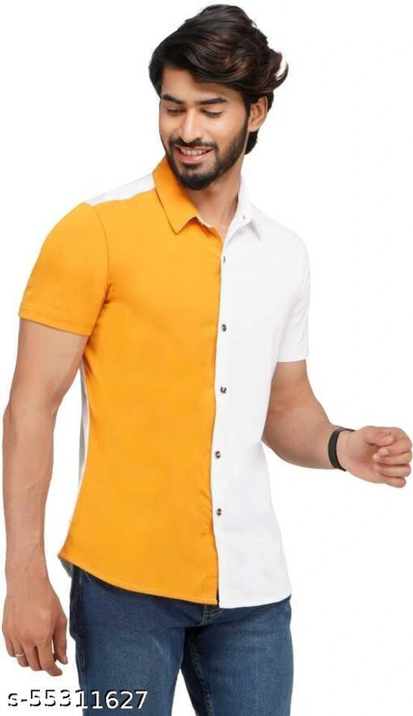 Catalog Name:*Pretty Fashionable Men Shirts* Fabric: Cotton Sleeve Length: Short Sleeves Pattern: Colorblocked Multipack: 1 Sizes: S (Chest Size: 28 in, Length Size: 26 in) M (Chest Size: 30 in, Length Size: 26.5 in) L (Chest Size: 31 in, Length Size: 27 in) XL (Chest Size: 32 in, Length Size: 27.5 in) XXL (Chest Size: 34 in, Length Size: 28 in) Easy Returns Available In Case Of Any Issue *Proof of Safe Delivery! Click to know on Safety Standards of Delivery Partners- https://ltl.sh/y_nZrAV3