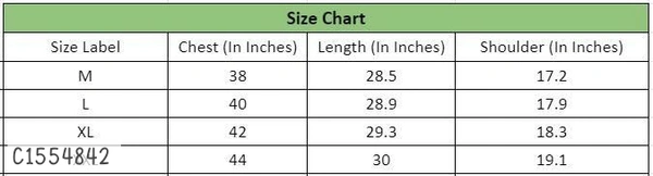 Size Chest Measurements (In Inches): M-38, L-40, XL-42, XXL-44