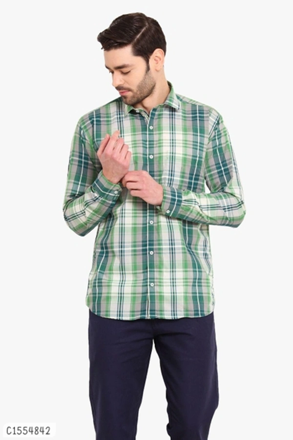 *Product Name:* Cotton Checkered Full Sleeves Regular Fit Casual Shirt