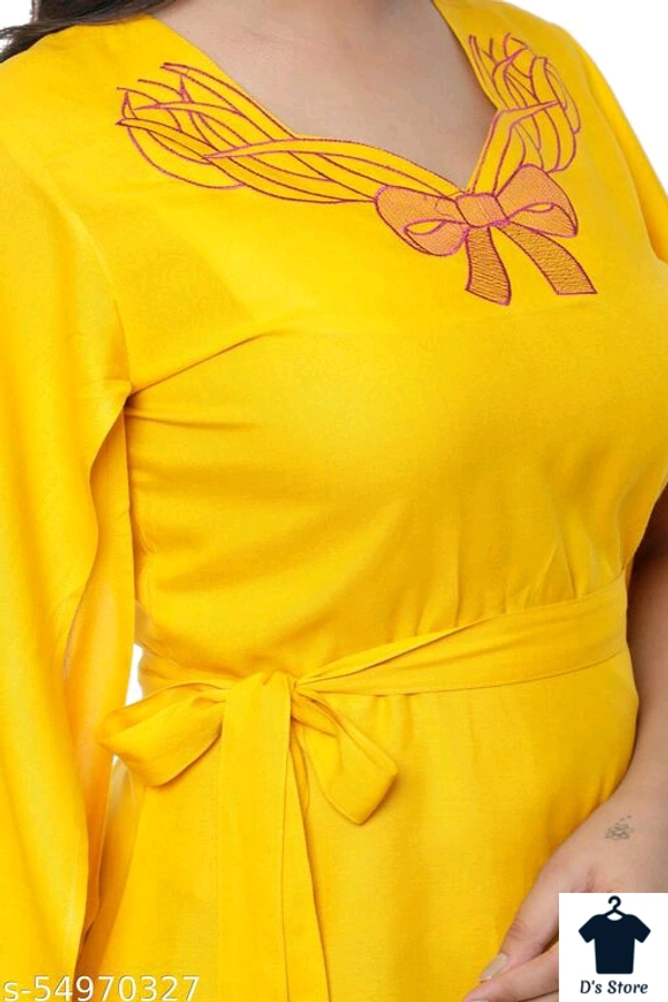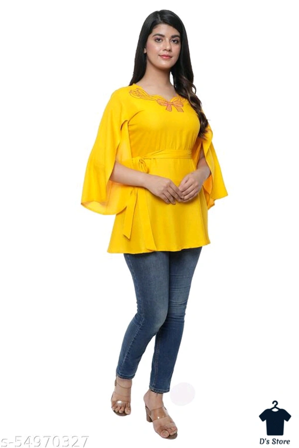 Catalog Name:*Trendy Latest Women Tops & Tunics* Fabric: Rayon Sleeve Length: Three-Quarter Sleeves Pattern: Embroidered Multipack: 1 Sizes: XS (Bust Size: 34 in) S (Bust Size: 36 in) M (Bust Size: 38 in) L (Bust Size: 40 in) XL (Bust Size: 42 in) XXL (Bust Size: 44 in) Easy Returns Available In Case Of Any Issue *Proof of Safe Delivery! Click to know on Safety Standards of Delivery Partners- https://ltl.sh/y_nZrAV3