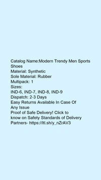 fashionable running sports shoe Material: Synthetic Sole Material: Rubber Multipack: 1 good quality product . Sizes: IND-7, IND-6, IND-9, IND-8