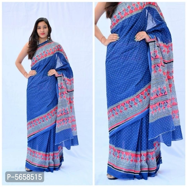 Beautiful Traditional Ethnic Indian Wear Saree with Blouse Piece. This Saree gives an Ethnic Indian look. This sari is great for wearing purposes. FABRIC: Mulmul Cotton saree with similar fabric Blouse pc || Work: Printed, Block print, Traditional Ethnic Look Occasion:- Formal, Casual, Occasional LENGHT: The Total Lenght of the Saree is 6.50 meters including Blouse Piece. ||Saree Fabric Size: Length β 5.50 Mtrs (approx), Width - 44" Inches (approx) || Blouse Size: Unstitch Fabric - Length: 1 meter (Approx), Width: 44" (Approx.) - Unstitched blouse fabric comes with saree so you can make as you like BLOUSE STITCHING: This Saree Comes with Unstitched Blouse Piece. Care Instructions: Machine Wash