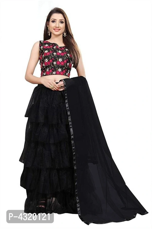 Designer Cream & Black Colour Net Material Wedding, Party & Festival Wear Lehenga Choli With Dupatta Set For Women & Girls