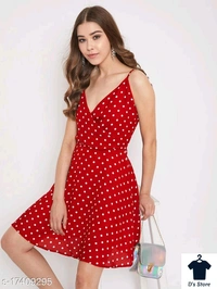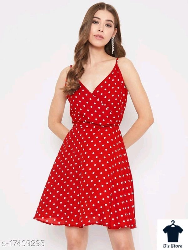 Red White Dot Printed Women Dress