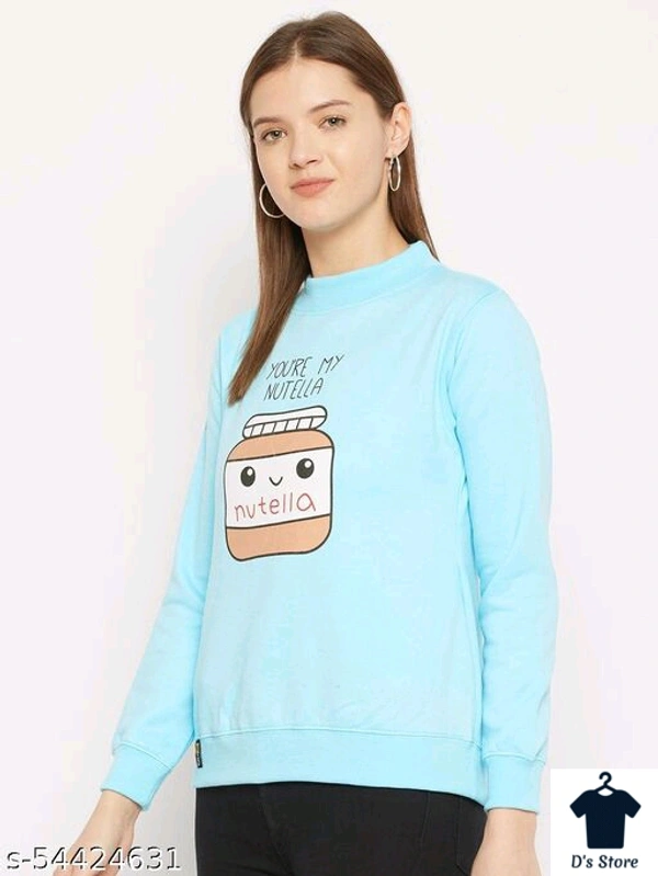 Catalog Name:*Trendy Fashionista Women Sweatshirts* Fabric: Fleece Sleeve Length: Long Sleeves Pattern: Printed Multipack: 1 Sizes: M (Bust Size: 32 in, Length Size: 22 in, Waist Size: 32 in, Hip Size: 34 in, Shoulder Size: 15 in) L (Bust Size: 36 in, Length Size: 23 in, Waist Size: 34 in, Hip Size: 36 in, Shoulder Size: 16 in) XL (Bust Size: 40 in, Length Size: 23 in, Waist Size: 36 in, Hip Size: 38 in, Shoulder Size: 17 in) XXL (Bust Size: 44 in, Length Size: 24 in, Waist Size: 38 in, Hip Size: 40 in, Shoulder Size: 18 in) Easy Returns Available In Case Of Any Issue *Proof of Safe Delivery! Click to know on Safety Standards of Delivery Partners- https://ltl.sh/y_nZrAV3