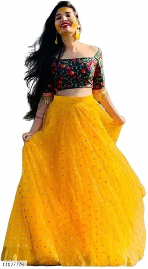 *Catalog Name:* Stunning Zari Butti Net Lehengas *Details:* Description: 1 Piece of Blouse , 1 Piece of Lehenga Fabric; Blouse : Banglori Satin Silk, Lehenga: Net, Inner: Raw Silk Length; Blouse : 0.8 Mtr, Lehenga: 42 In, Flair: 2.5 Mtr Size: Blouse : Alter Up To 44 inch, Lehenga: Alter Up To 44 inch Type; Blouse : Semi-stitched, Lehenga: Semi-stitched Work; Blouse : Printed, Lehenga: Zari Butt Designs: 4 πŸ’₯ *FREE COD* 🚫 No Returns Applicable 🚚 *Delivery*: Within 7 days