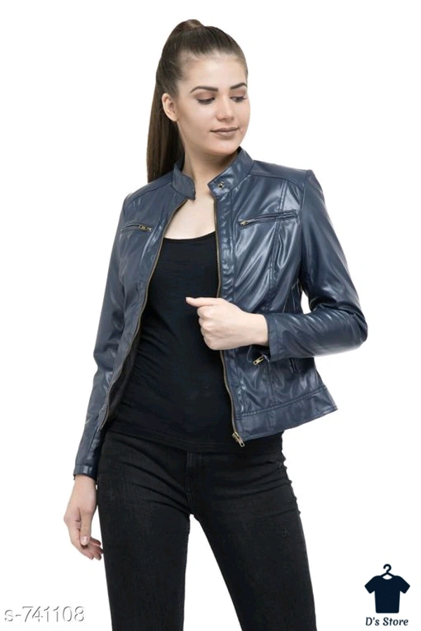 Stylish Women Blue Leather Jacket