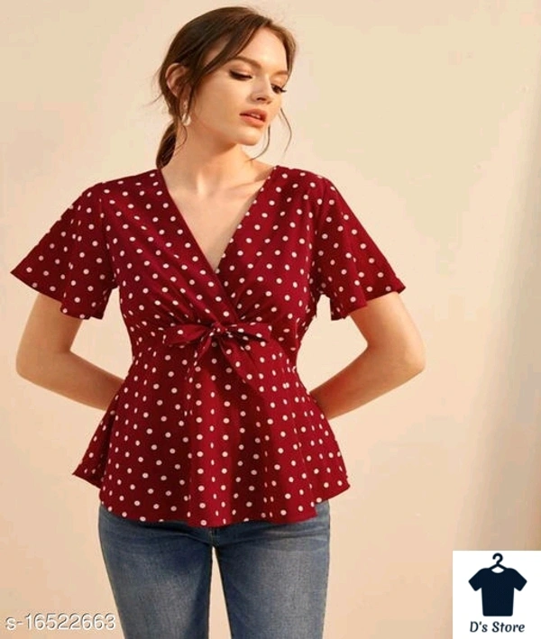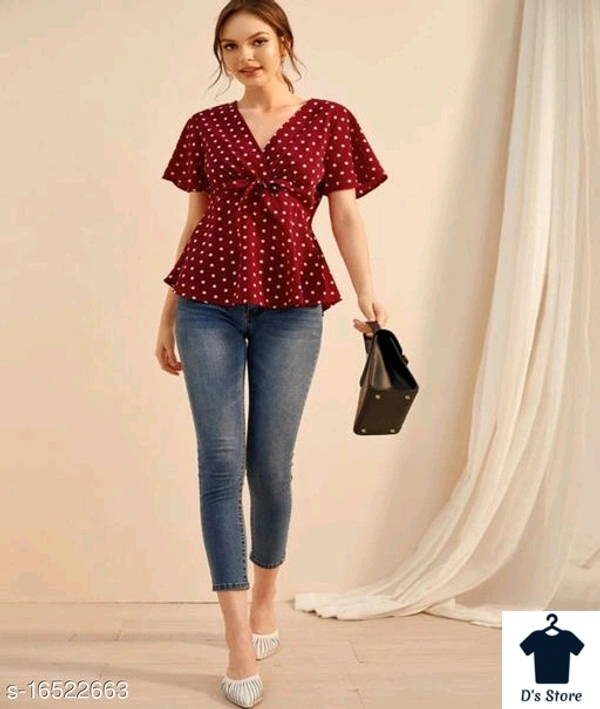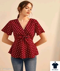 VVeshh Women's Front Tie Peplum Polka Dot Top Fabric: Crepe Multipack: 1 Sizes: S, XL, L, M Country of Origin: India