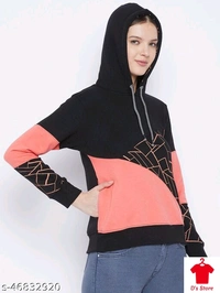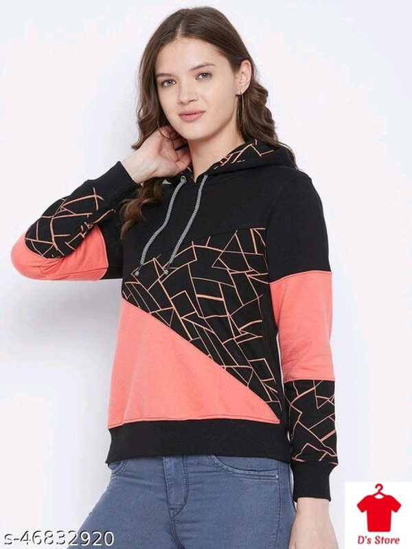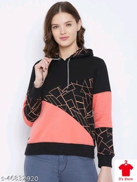 Women Printed Black And Peach Colored Hooded Sweatshirt