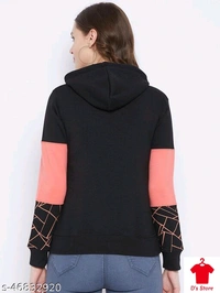 First Krush Women's Fleece Black Full Sleeves Colorblocked Hooded Sweatshirt