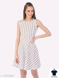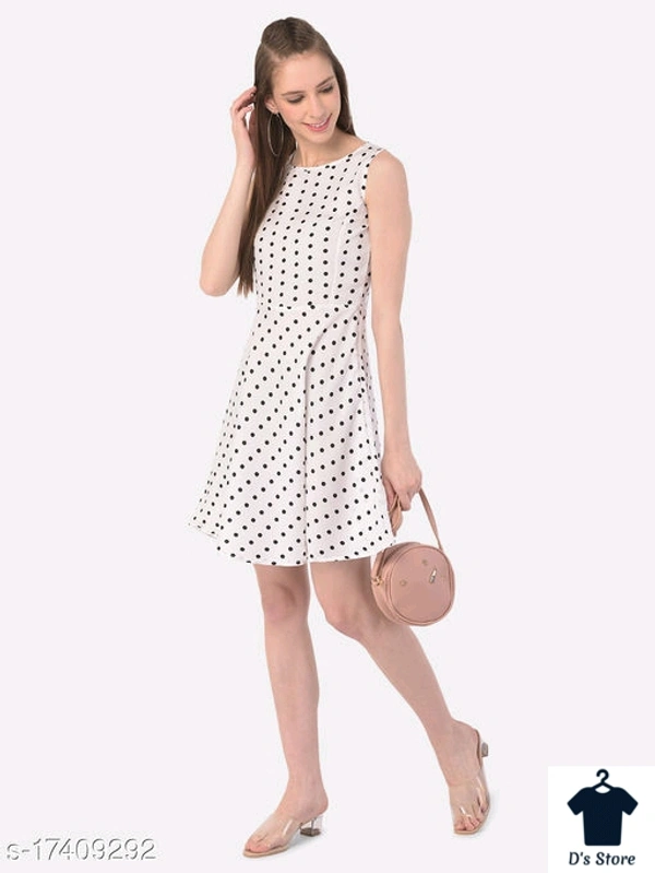 Women White Black Dot Printed Dress