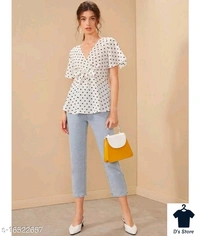 VVeshh Women's Front Tie Peplum Polka Dot Top Fabric: Crepe Multipack: 1 Sizes: S, XL, L, M Country of Origin: India
