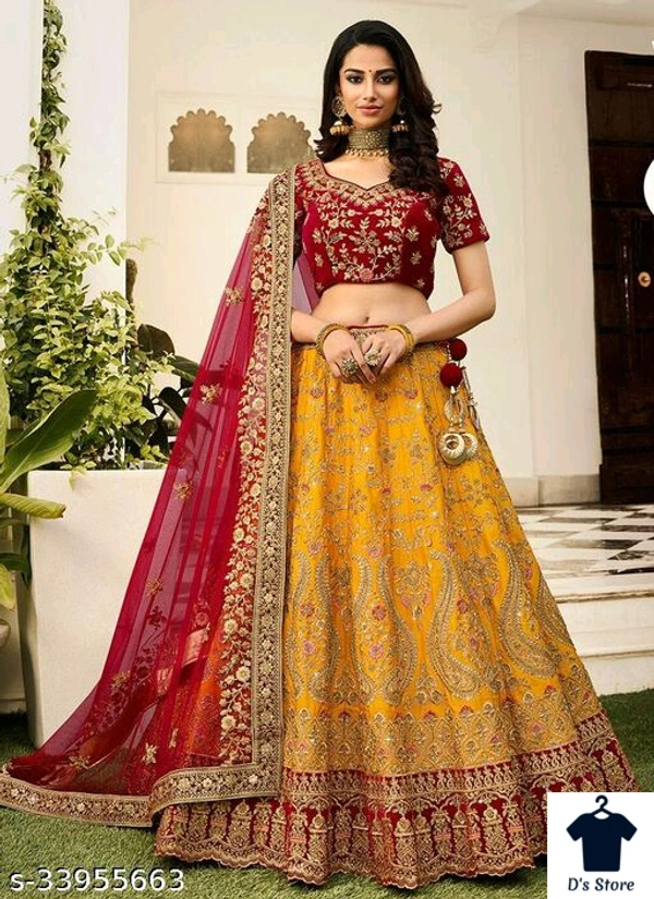 Catalog Name:*Trendy Women's Silk Saree* Topwear Fabric: Velvet Bottomwear Fabric: Art Silk Dupatta Fabric: Net Set type: Choli And Dupatta Top Print or Pattern Type: Embroidered Bottom Print or Pattern Type: Embroidered Dupatta Print or Pattern Type: Lace,Embroidered Sizes: Semi Stitched (Lehenga Waist Size: 44 m, Lehenga Length Size: 48 m, Duppatta Length Size: 2.1 m) Un Stitched, Free Size Easy Returns Available In Case Of Any Issue *Proof of Safe Delivery! Click to know on Safety Standards of Delivery Partners- https://ltl.sh/y_nZrAV3