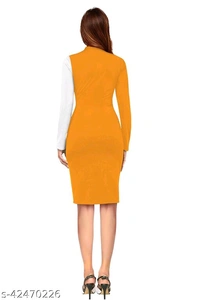 Stylish Fabulous Women Dresses Fabric: Lycra Sleeve Length: Long Sleeves Pattern: Colorblocked Multipack: 1 Sizes: S (Bust Size: 34 in, Length Size: 36 in) XL (Bust Size: 40 in, Length Size: 37 in) L (Bust Size: 38 in, Length Size: 37 in) M (Bust Size: 36 in, Length Size: 36 in) XS (Bust Size: 32 in, Length Size: 36 in) Care Instructions: Machine wash warm wash with like colours only non-chlorine bleach when needed tumble dry low warm iron if needed Fit Type: Slim Fabric: 95% Polyester, 5% Spandex Style: Bodycon Dress Pattern: Solid/Plain Sleeve:- Full Country of Origin: India